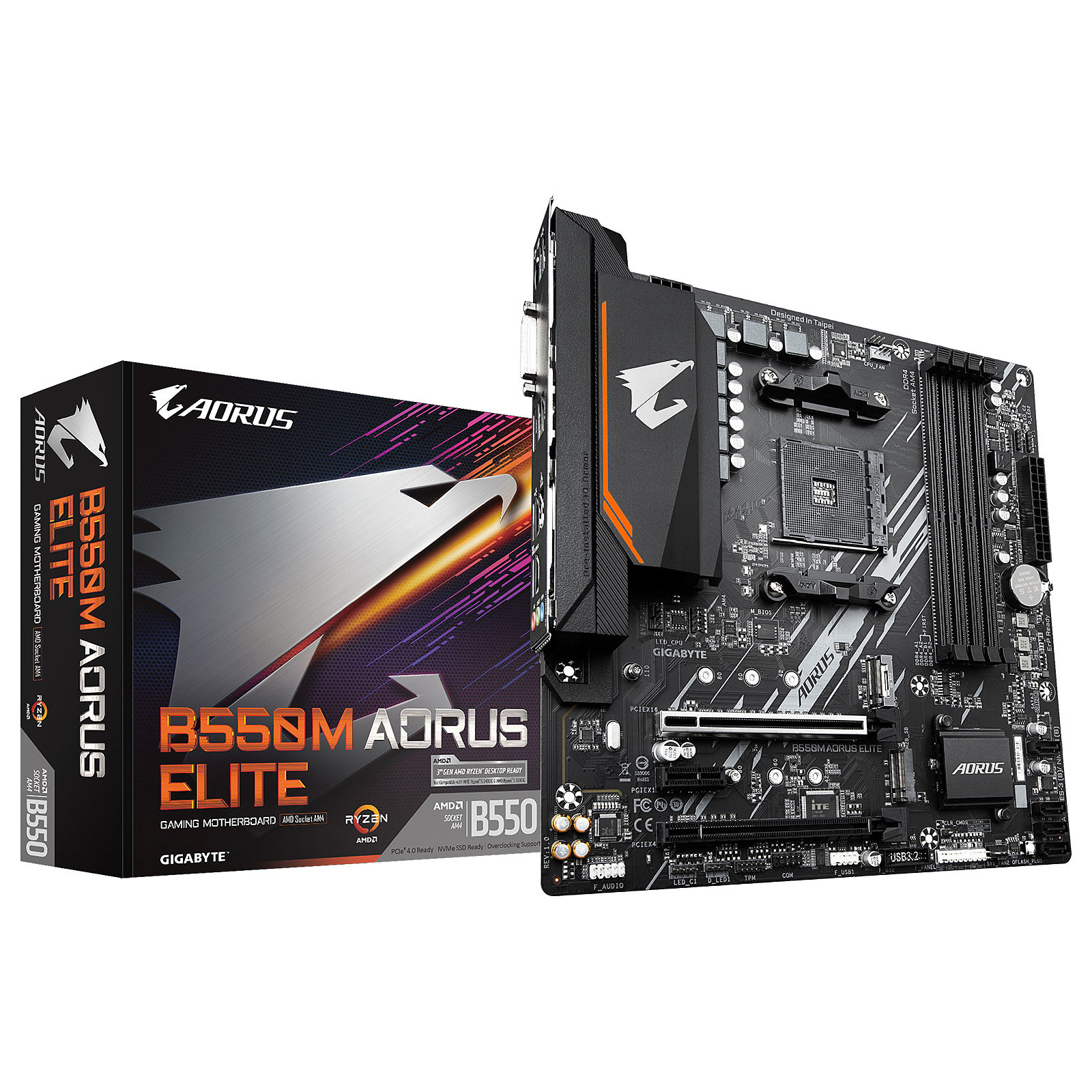 • Compatible avec Processeurs AMD Ryzen™ 3e Gen (incluant ceux avec Processeur Graphique Radeon™)